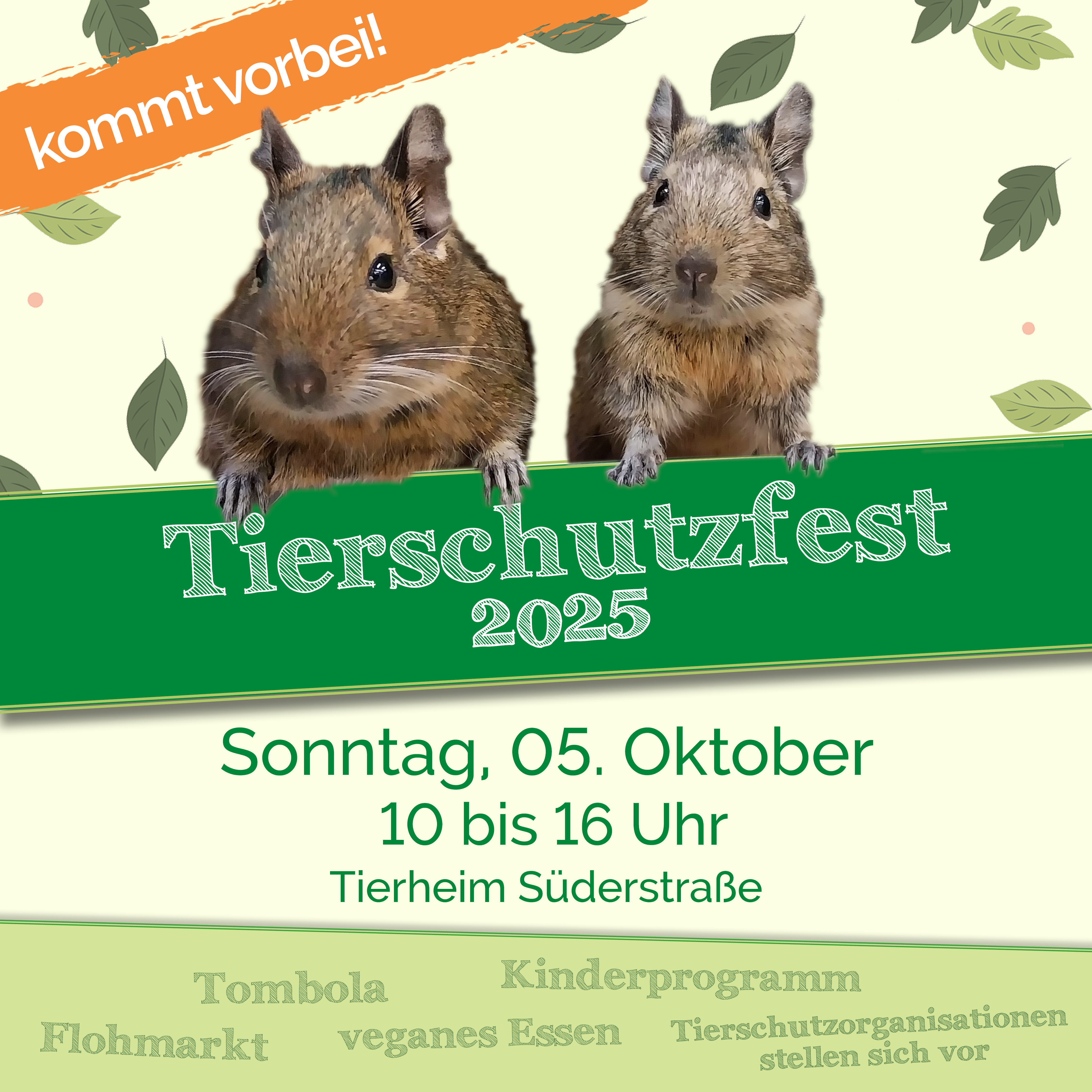 El domingo 5 de octubre de 2025, la asociación protectora de animales de Hamburgo von 1841 e. V. (HTV) de 10 a 16 horas Festival de protección de animales en el refugio de animales de Süderstraße a. El evento tiene una larga tradición y ofrece una mirada entre bastidores al refugio de animales de Süderstraße. Numerosos clubes y organizaciones informarán sobre su labor de protección de los animales en el recinto del refugio. El programa incluye sorteo, diversión infantil, mercadillo y otras actividades. Sólo las delicias libres de crueldad animal (veganas) garantizan el bienestar físico de los invitados.