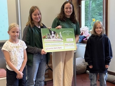 A principios de julio, nuestro departamento de protección de animales para niños y jóvenes pudo visitar la escuela Montessori en Bergedorf con el empleado Levke y la voluntaria federal Leonie. Había una razón especial para esto: una donación de las ganancias de una recaudación de fondos interna de la escuela.