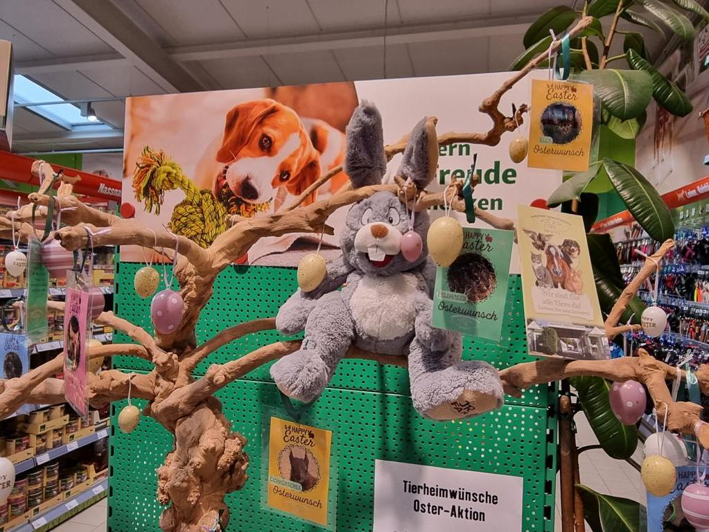 Qué gran alegría pascual para nuestros protegidos: 13 tiendas y un club deportivo participaron en nuestra campaña de Pascua con deseos de animales que lanzamos este año. Esto resultó en todo tipo de regalos y muchas sorpresas útiles para nuestros 840 animales actuales. Decimos "¡Gracias!" a todas las empresas participantes y a sus generosos clientes y estamos contentos por tanto apoyo a la protección animal!