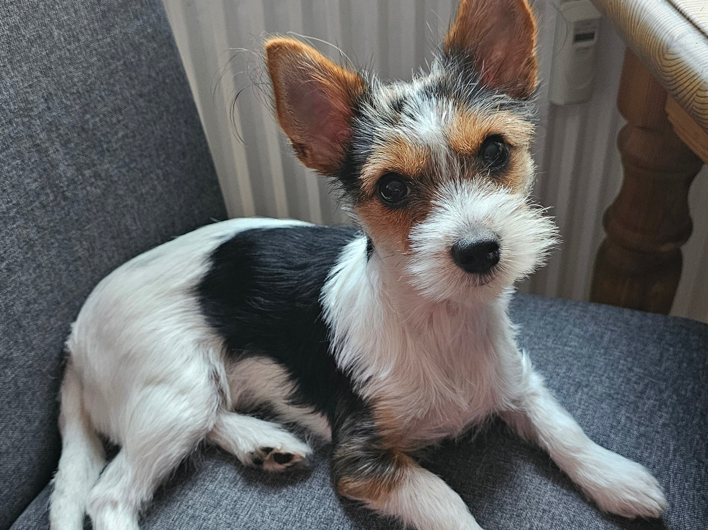 Después de visitar a nuestro Corky (Merlín en su caso) varias veces en diciembre de 2023, se mudó con nosotros en enero de 2024. En realidad, el hombrecito simplemente se quedó dormido en el camino a casa. Dio sus primeros pasos en su nuevo hogar tímidamente y bajo la estrecha observación de nuestro pastor macho de 7,5 años.
