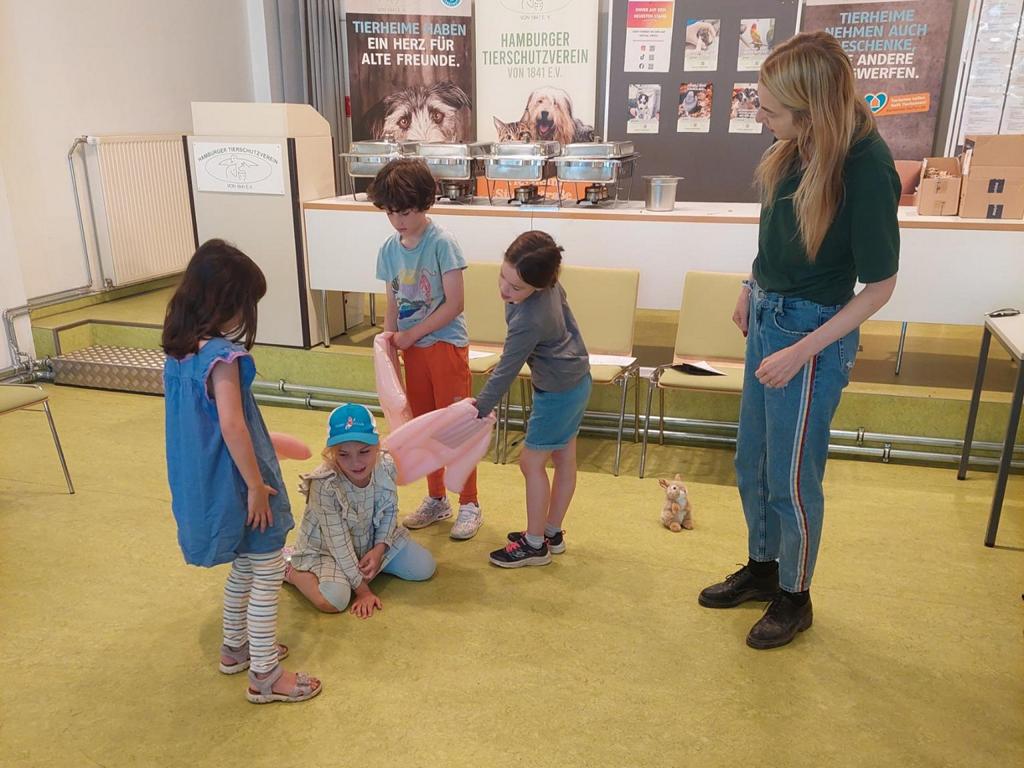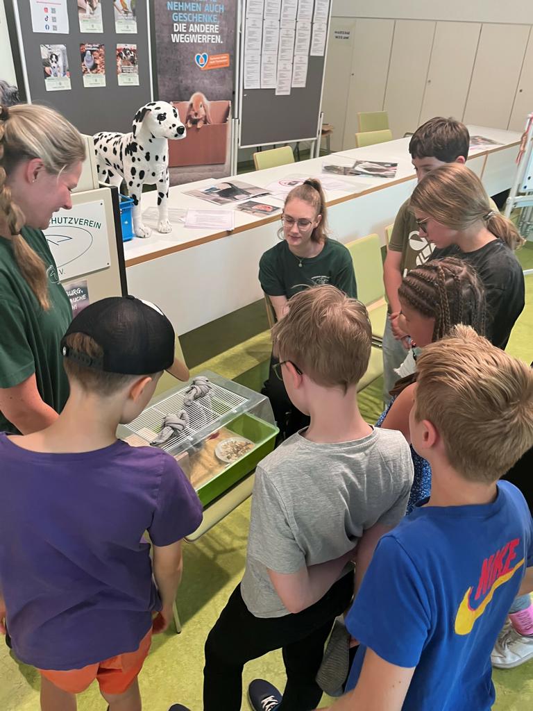Este año se podrían asistir a dos fantásticos recorridos por refugios de animales (uno para mayores de 10 años y otro para mayores de 7 años). El objetivo principal era informar sobre el trabajo en nuestro refugio de animales y sobre los refugios de animales en general: quién trabaja en el refugio de animales, por qué vienen los animales al refugio de animales, cuáles y cuántos animales viven en el refugio de animales de la Süderstrasse.